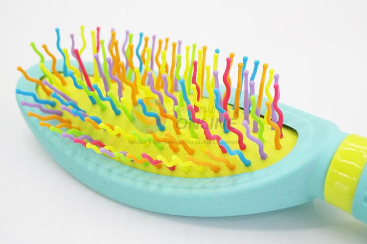 Thin Oval Shape Rainbow Big Wet Hair Brush Curved Needle Hair Brush Detangle Hair Comb with Green Plastic Handle