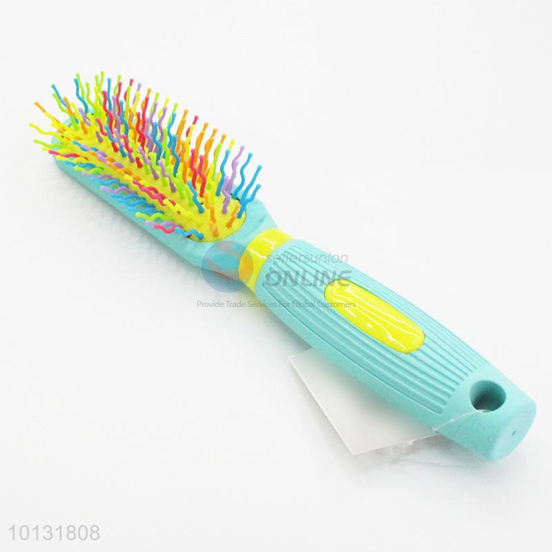Mini Thin Shape Rainbow Big Wet Hair Brush Curved Needle Hair Brush Detangle Hair Comb with Green Plastic Handle