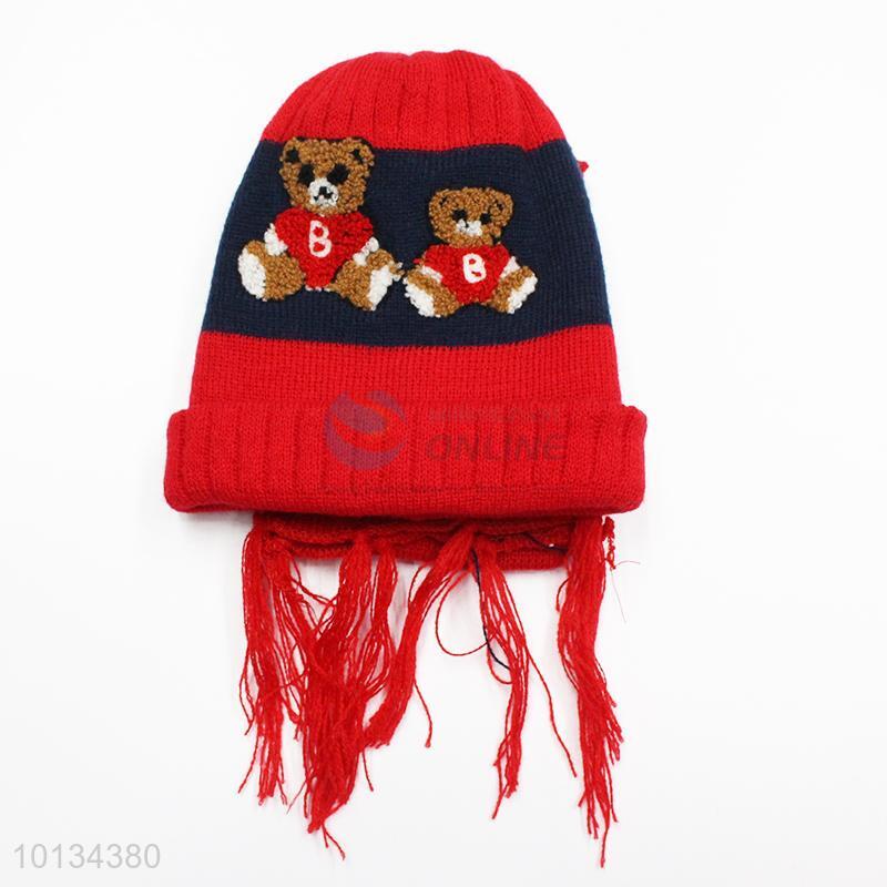 Top quality bear cotton kids winter warm hats