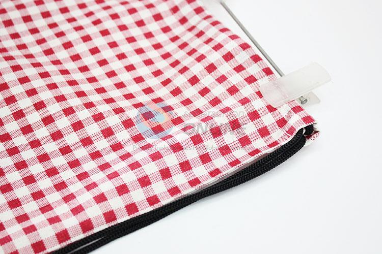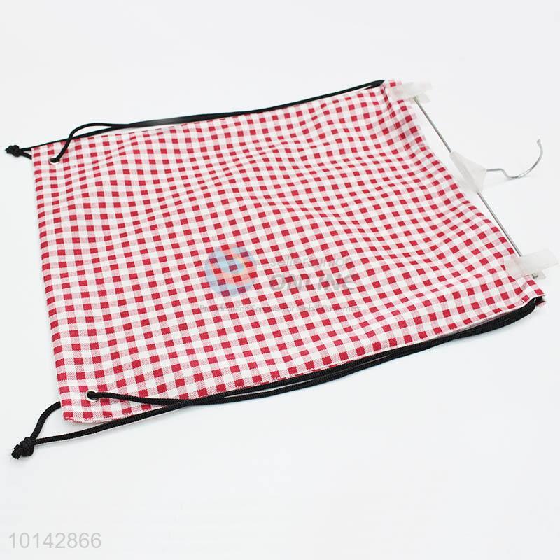 Red grid printed linen backpack/storage bag/drawstring bag