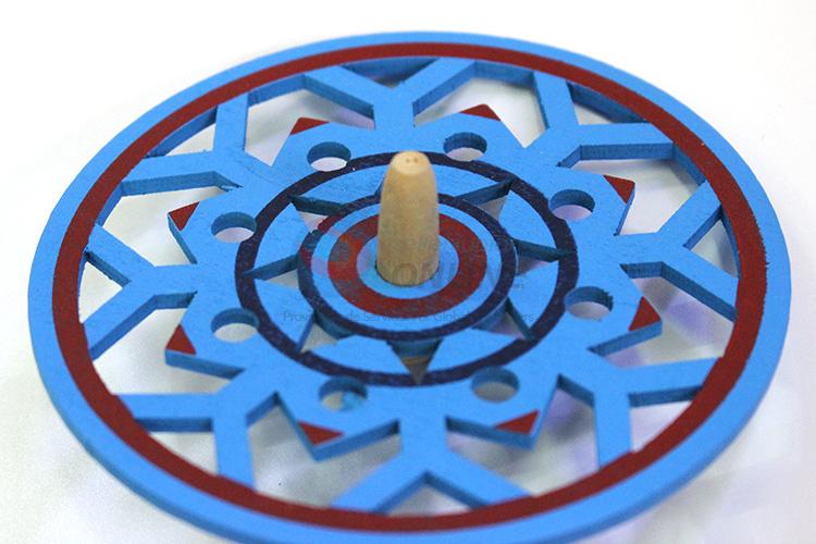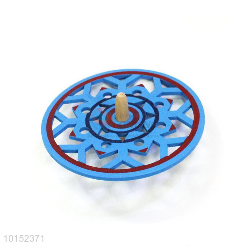 Blue Engraving Wooden Spinning Top Toy For Children