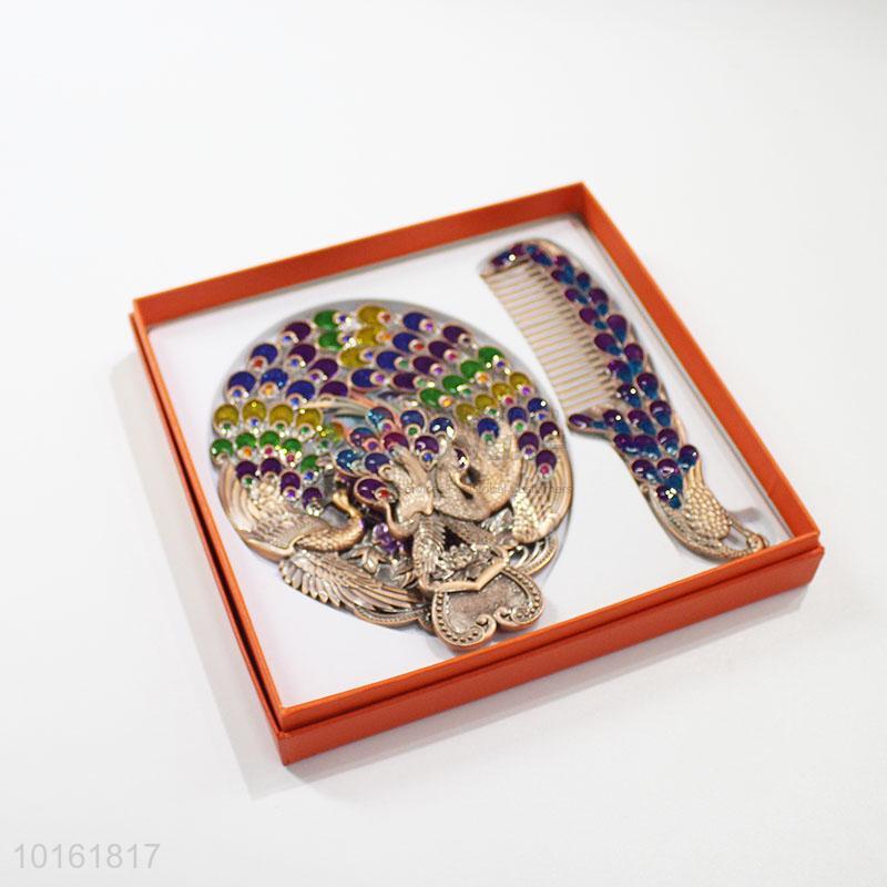 Good quality beautiful design alloy mirror and comb set