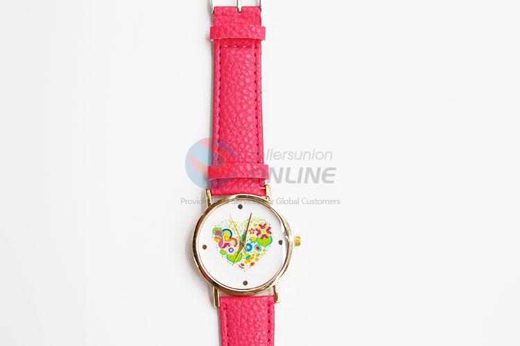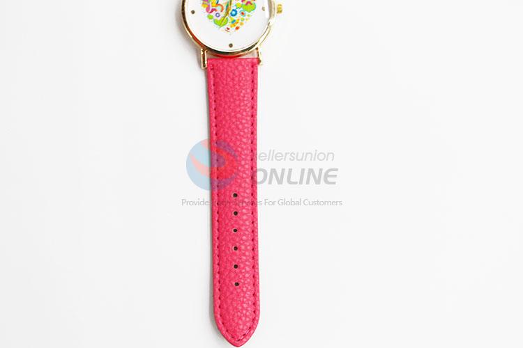 Casual Heart Printed PU Wristwatch Women Bracelet Watch