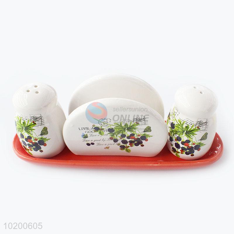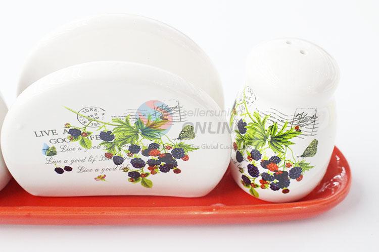 Hot Selling Ceramic Printing Condiment Bottle Set