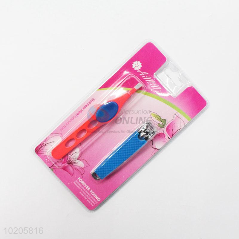 Promotional 2pcs Stainless Steel Nail Clipper/Eyebrow Tweezers Beauty Tool Set