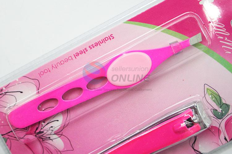 Durable 2pcs Stainless Steel Nail Clipper/Eyebrow Tweezers Beauty Tool Set