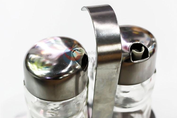Glass Bottle Stainless Steel Cover Condiment Salt and Pepper Shaker Set