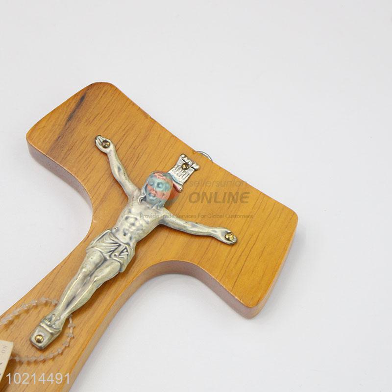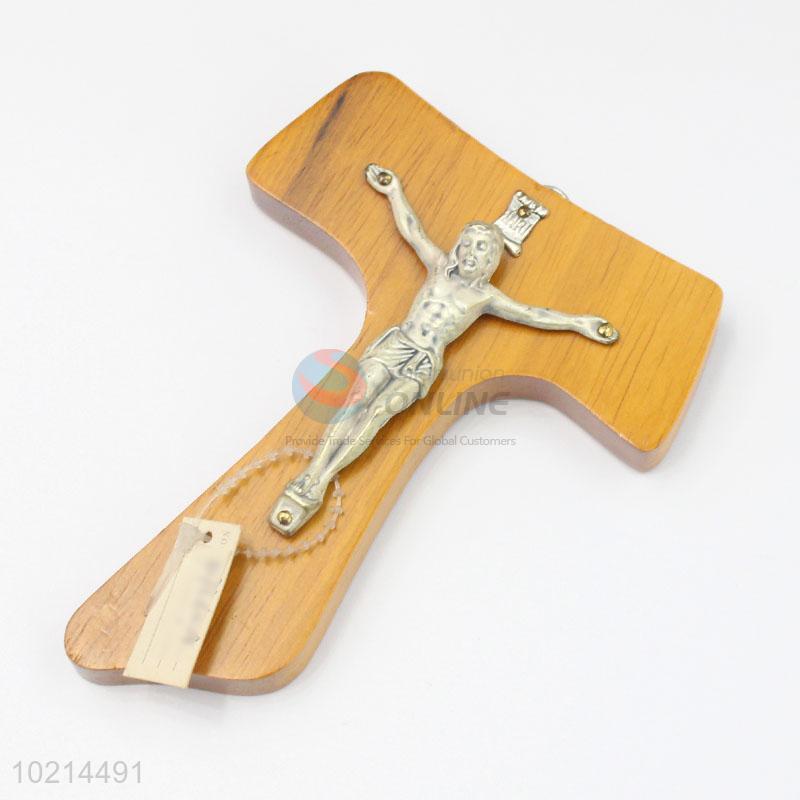 Promotional "T" shaped wood crucifix with Jesus on cross