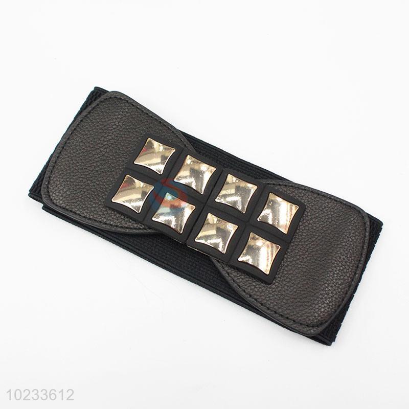 Rivet Design Pu Leather Elastic Woven Belt for Women