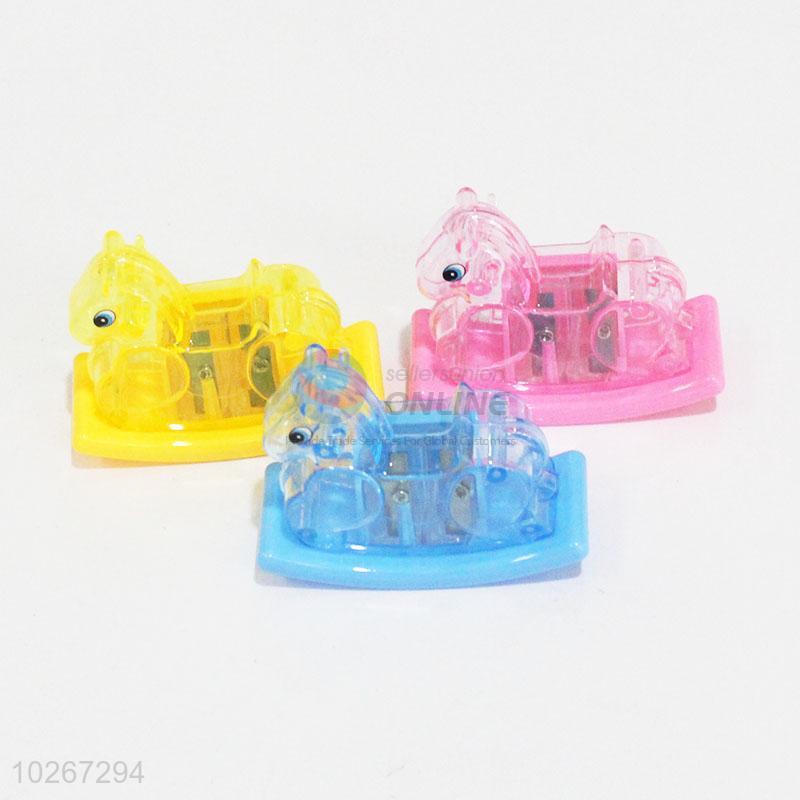 Wholesale cute fashionable low price hobbyhorse shape 3pcs pencil sharpeners