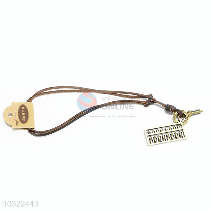 Hot Sale Cowhide Sweater Necklace with Abacus Pendant