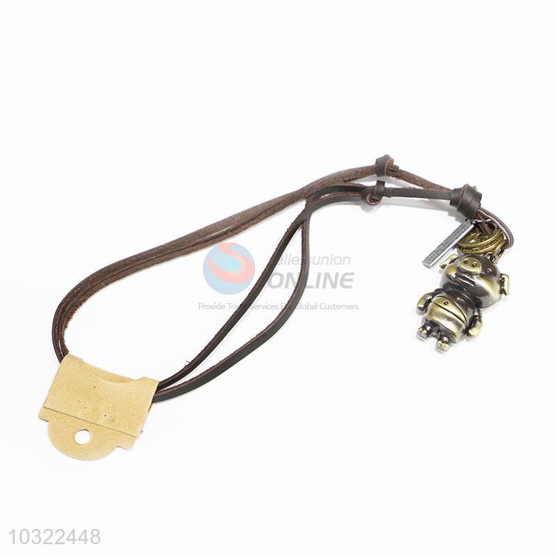 Promotional Gift Cowhide Sweater Necklace with Pig Pendant