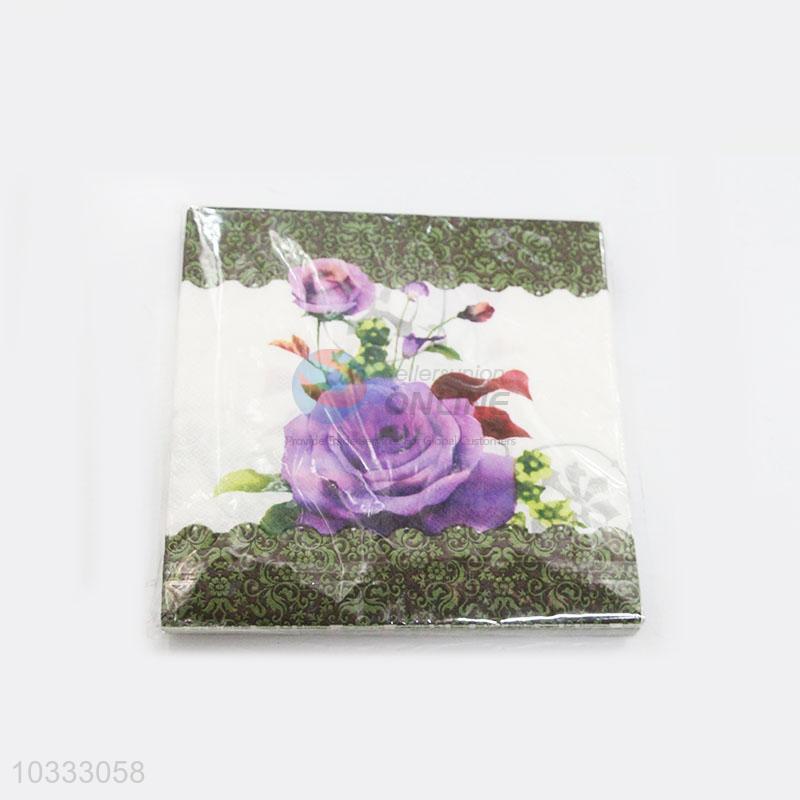 Beautiful Purple Flower Printed Square Paper Towel for Sale