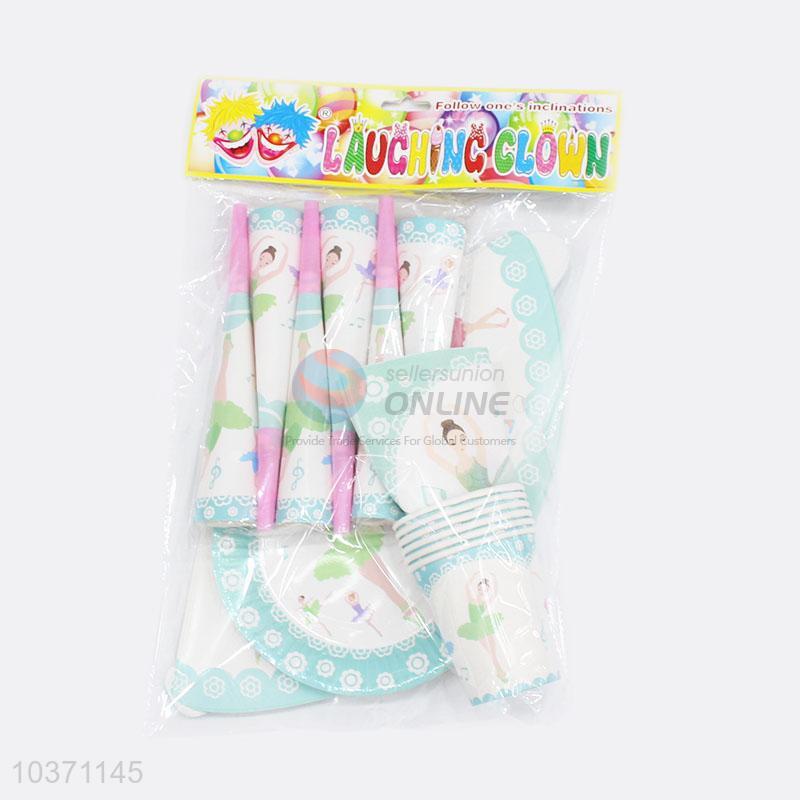 Cute 6pcs cup/plate/glasses dancing girl pattern tableware set