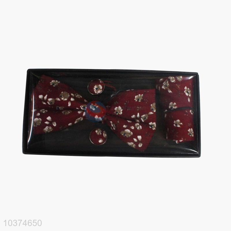 Factory promotional good quality printed bow tie+kerchief