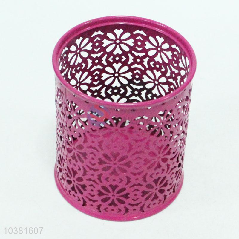 Rose Red Hollow Metal Pen Container