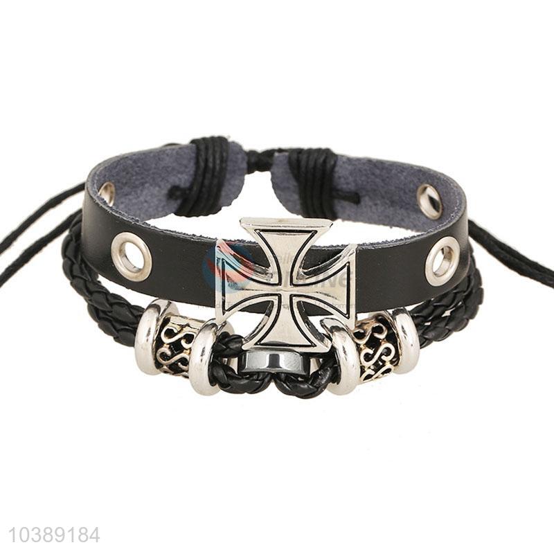 Custom Fashion Cross Shape Leather Bracelet