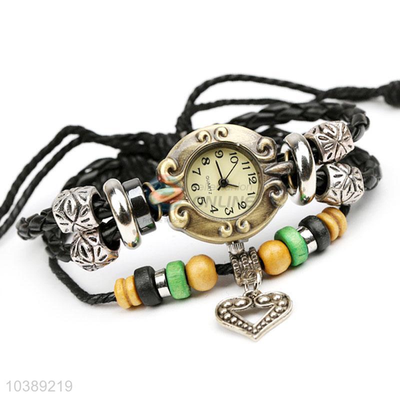 Hot Selling Color Beads Leather Bracelet Fashion Wristwatch