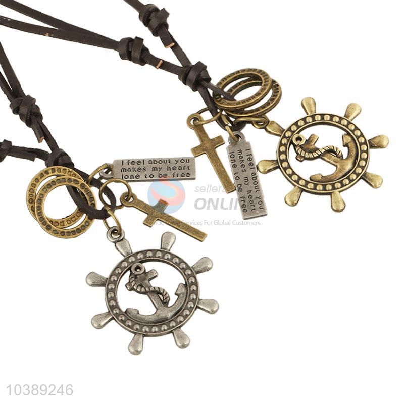 New Design Boat Anchor Pendant Leather Necklace