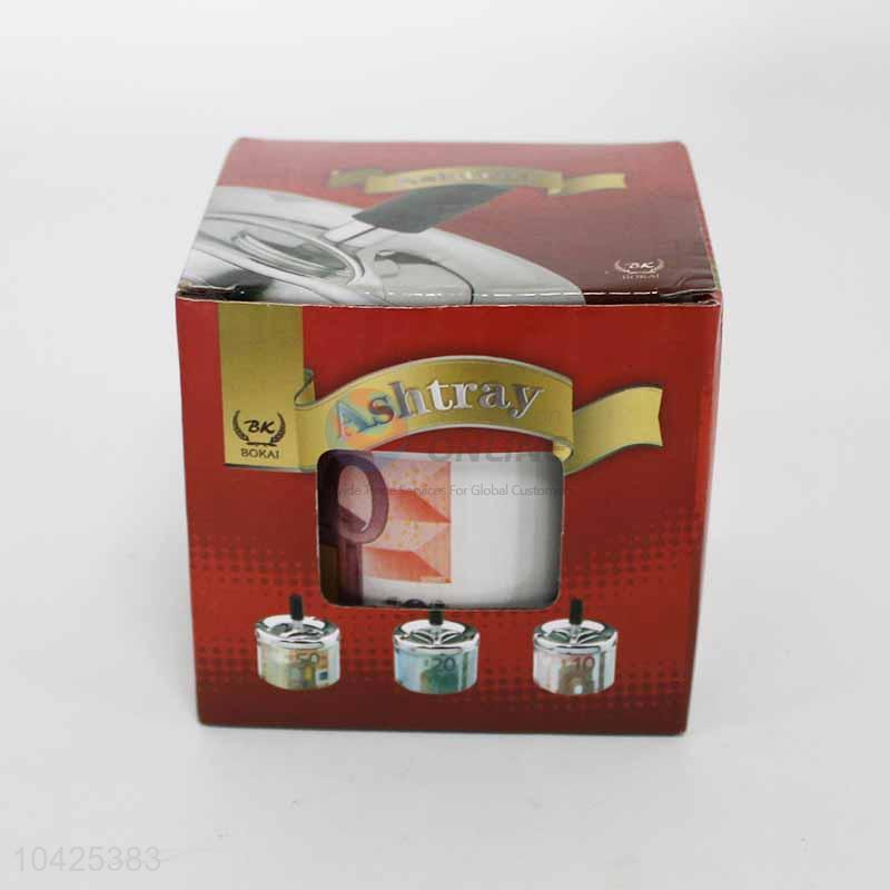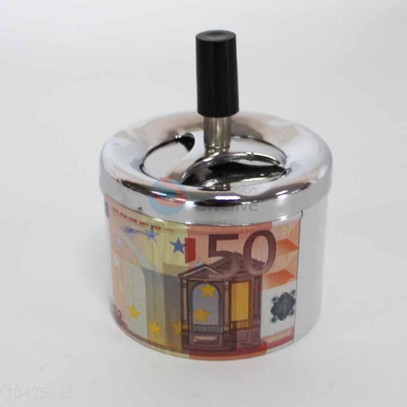 Round Push Down Cigarette Ashtray with Spinning Tray