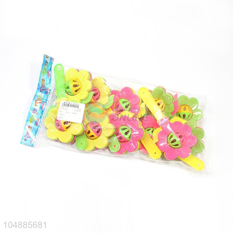 High grade custom flower shape hand bell rattle toy for baby