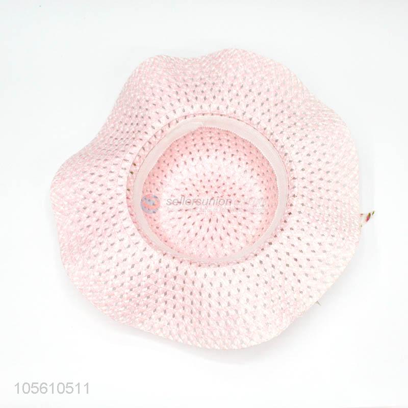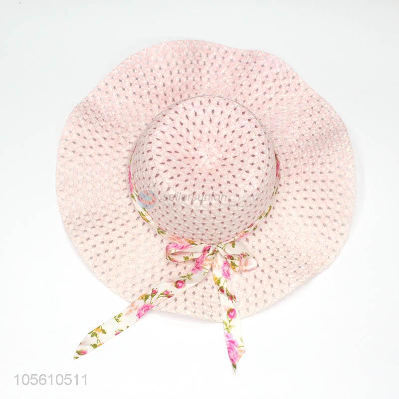 New arrival women beach cap summer sun straw hat with ribbon