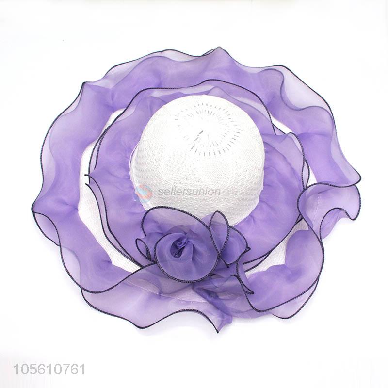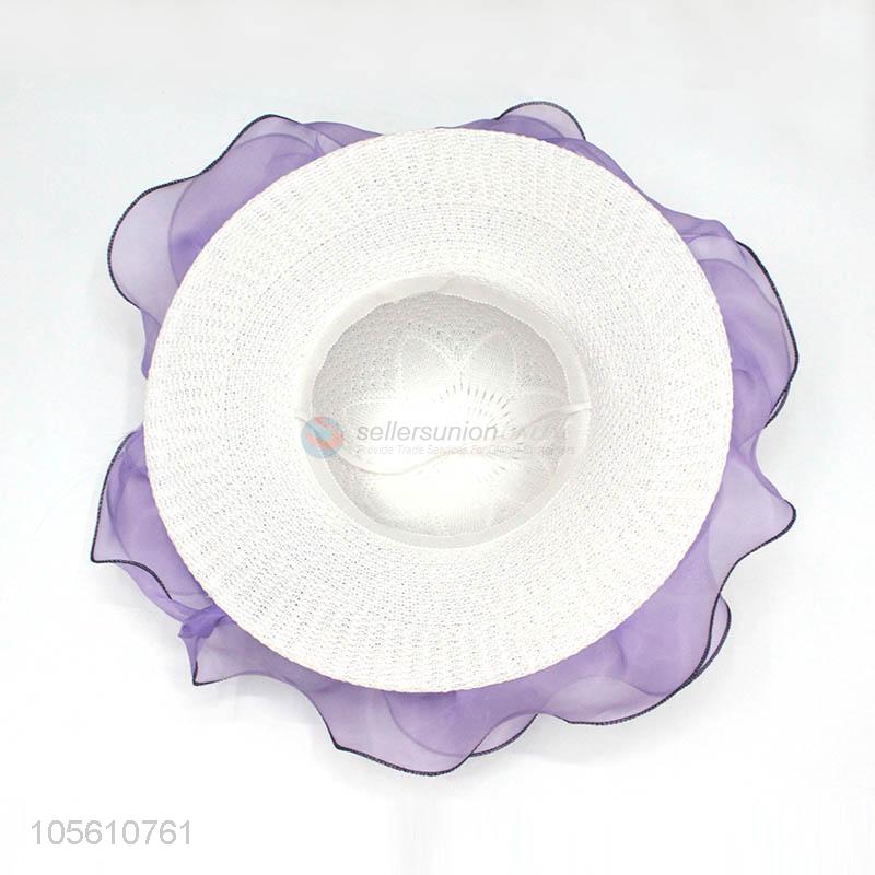 High grade lady sun caps women straw beach hat with lace