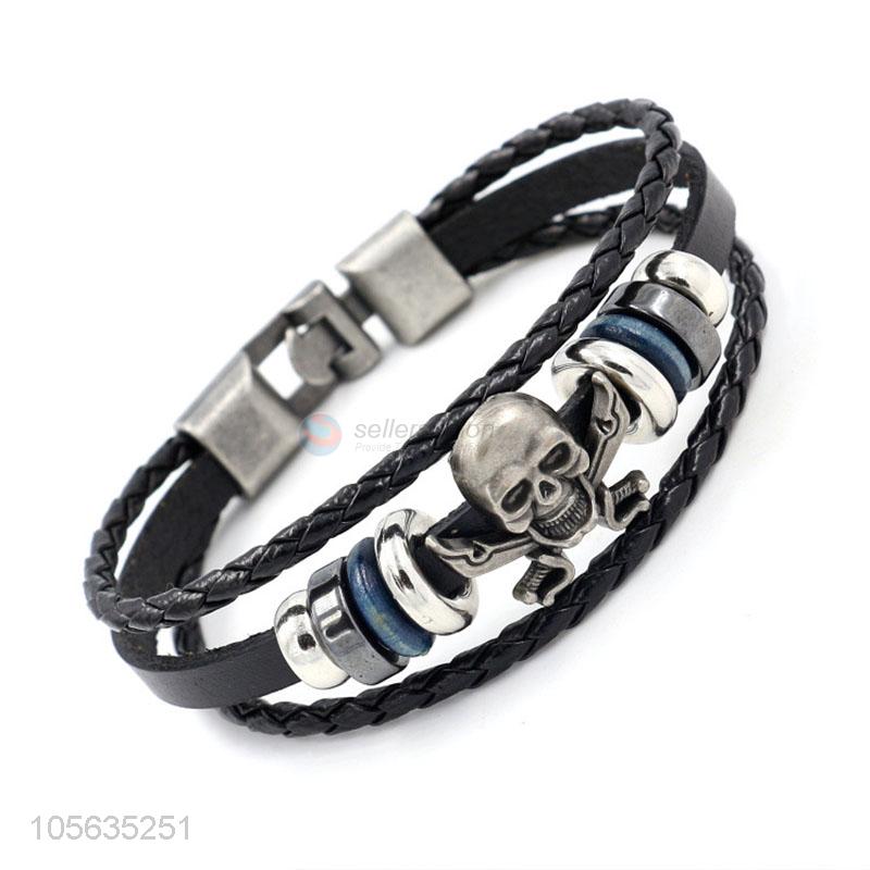 New items retro styles handmade mens leather bracelets with skull charms
