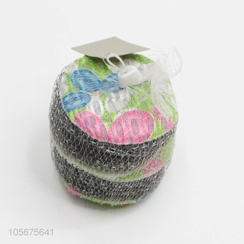 Recent design kitchen supplies steel wire ball with printed cleaning cloth