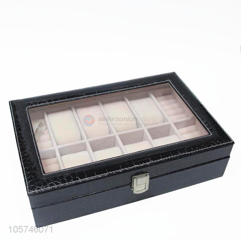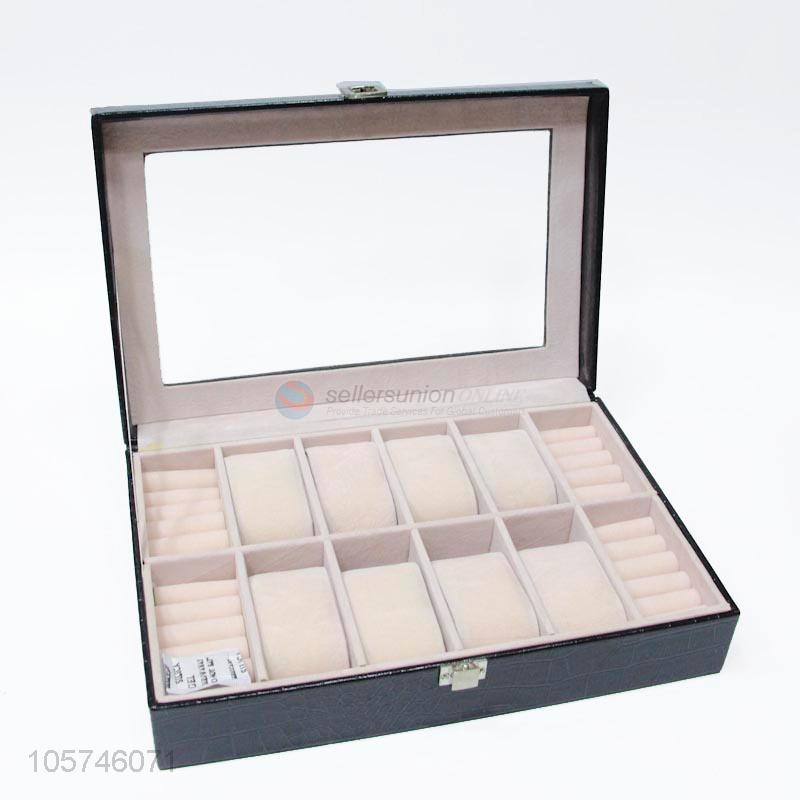 New arrival rectangle multi-grid pu ring jewelry storage box