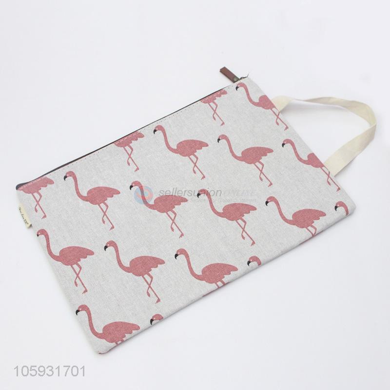 Low Price Lovely Flamingo Cotton and Linen Portable File Bag