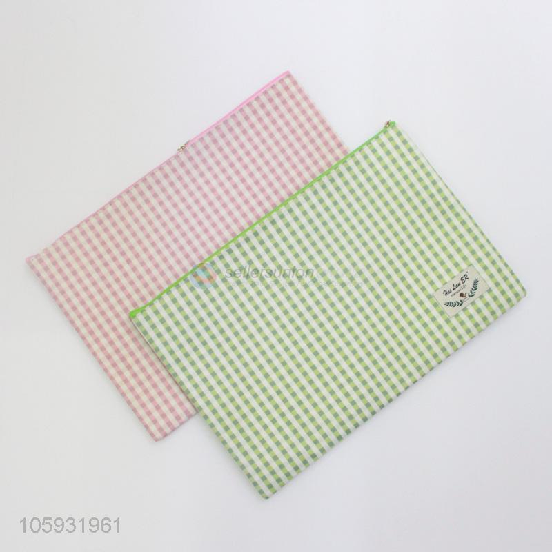 High Quality Plaid Student Zipper Bag Examination Data File Bag