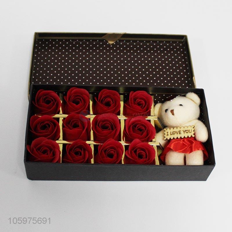 China Factory Beauty Rose Flower Red Flowers With Cute Bear Doll For Gifts