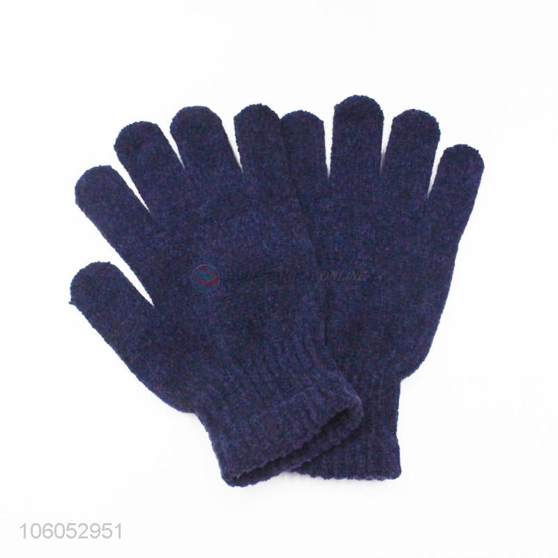 Top quality blue chenille warm soft knitted gloves
