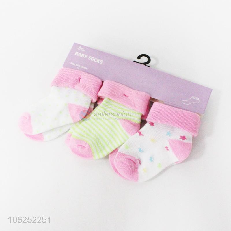 Customized breathable lovely polyester knitted baby socks 3pcs