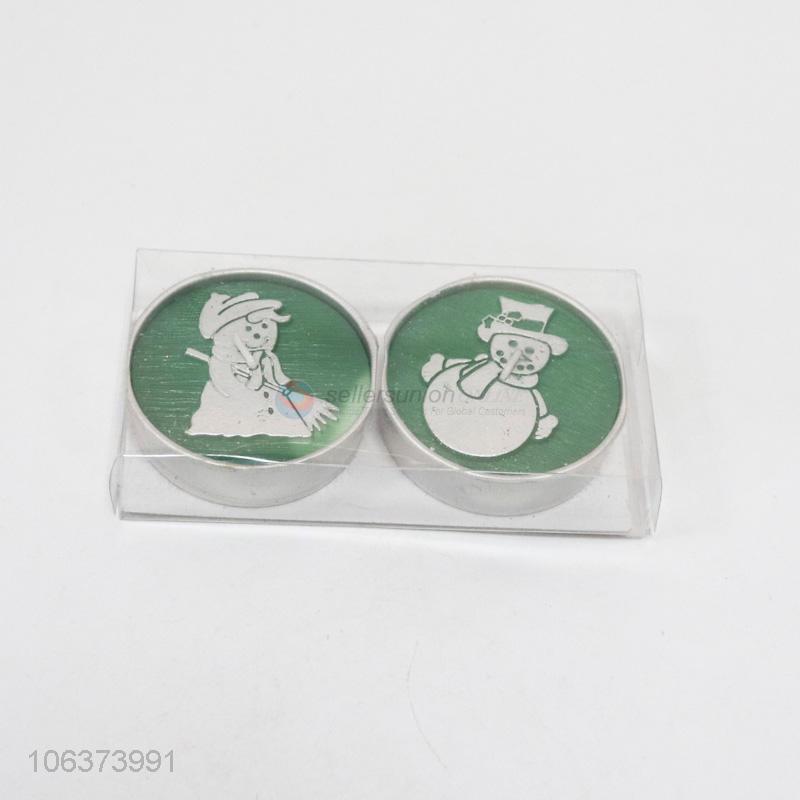 Good Sale 2 Pieces Snowman Pattern Round Craft Candle