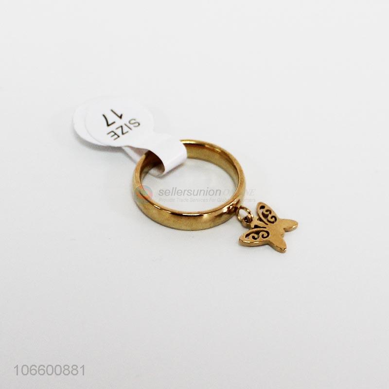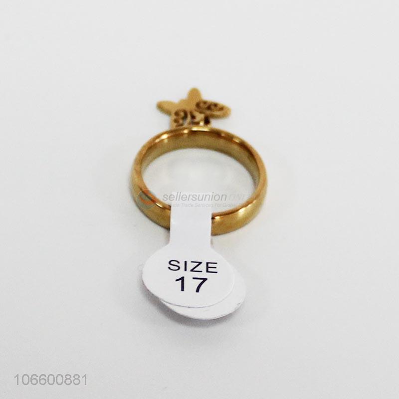 Latest style women jewelry gold plated alloy ring with charms