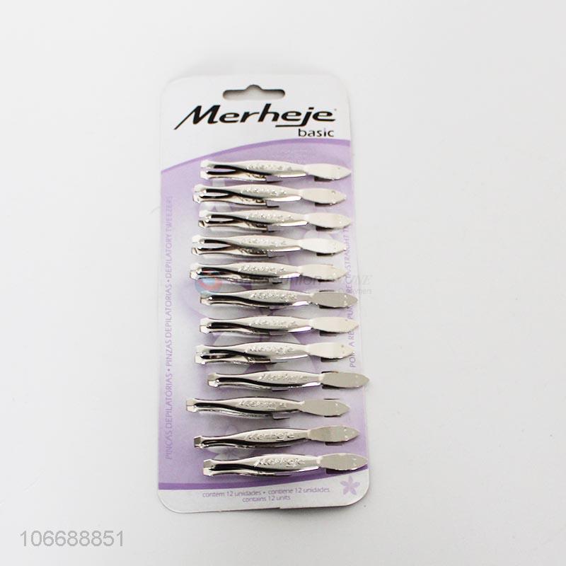 Wholesale professional 12pcs stainless steel eyebrow tweezers