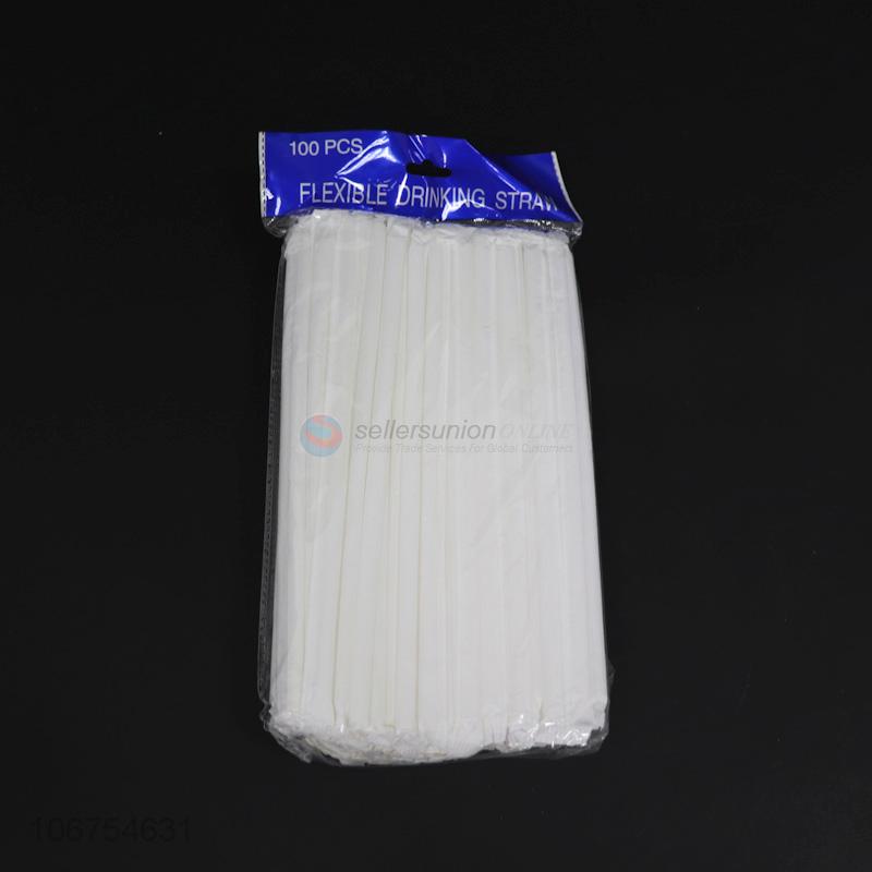Wholesale 100PCS Disposable Flexible White Plastic Straw