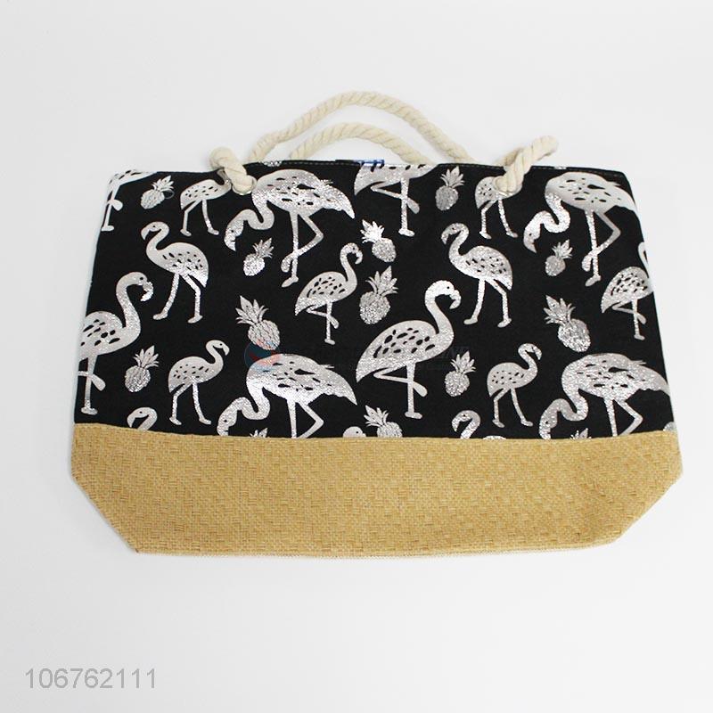 Best quality flamingo printed women beach bags fashion tote bag