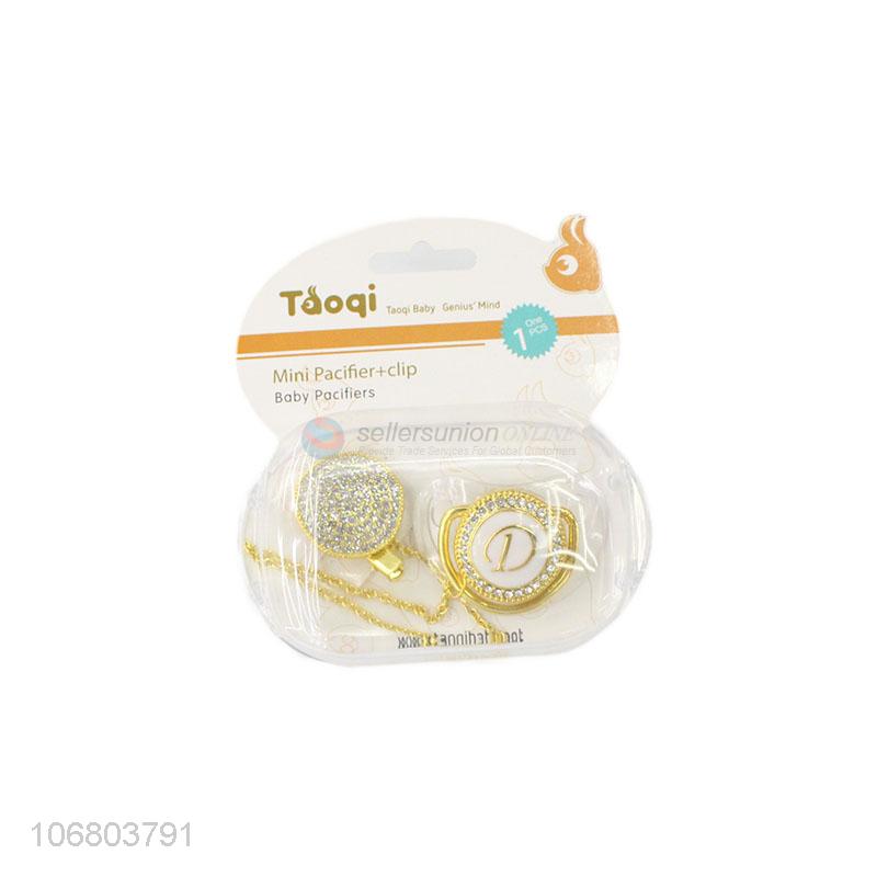 Newly designed rhinestone alloy baby nipples pacifier with clip