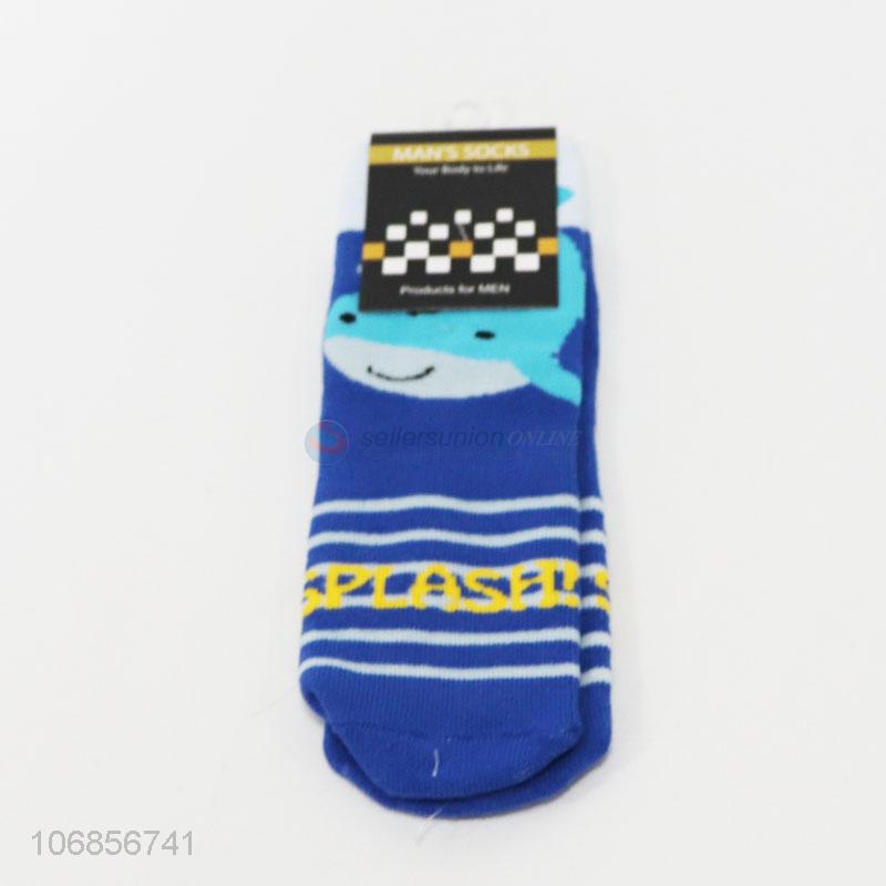 Good quality men cartoon shark cotton socks