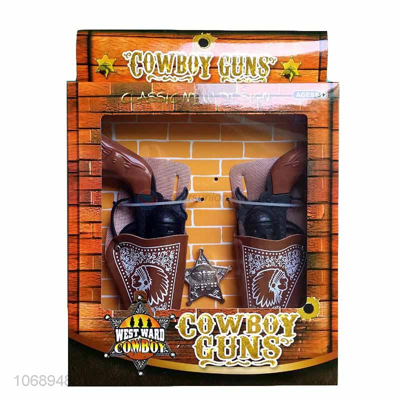 Double Cowboy Gun With Brown Gun Case And Police Badge Set