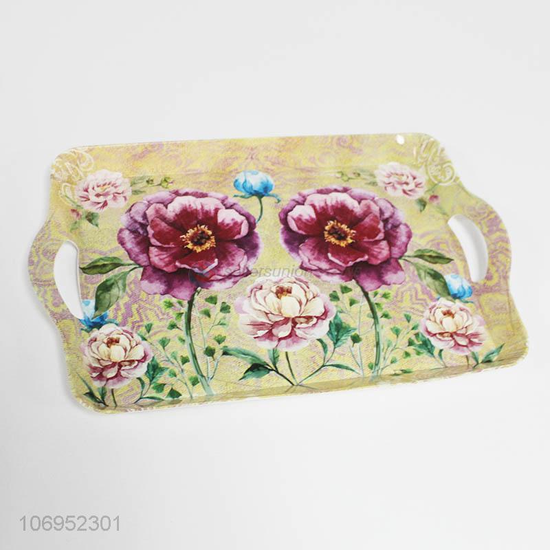 Premium quality flowers printed rectangle plastic food serving tray