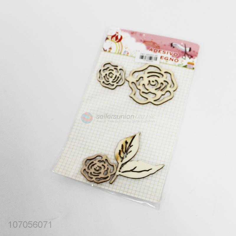Hot sale laser cut wood craft rose sticker for wall decoration