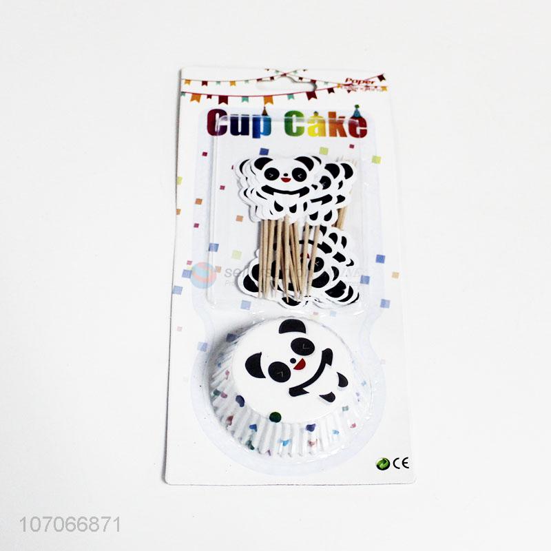 Best selling birthday party supplies panda cupcake toppers and cupcake cups