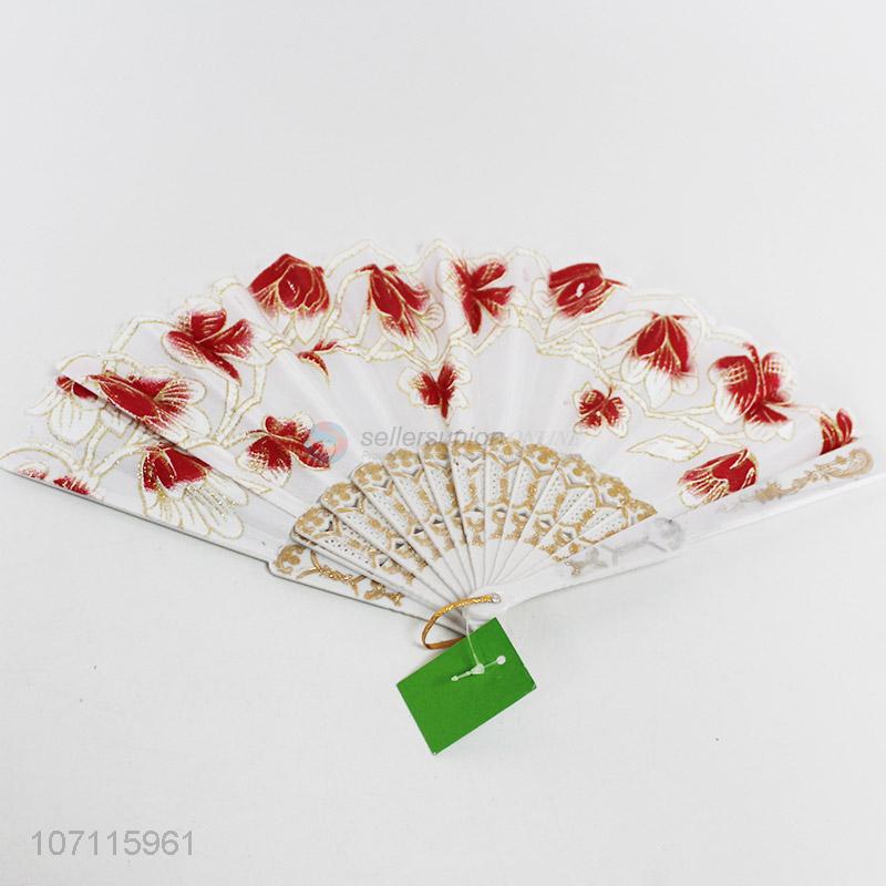 Unique design floral folding plastic hand fan with high quality