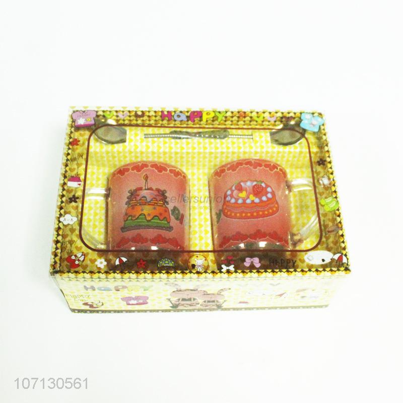 Reasonable price delicate cake printed glass cup set adults kids birthday gifts