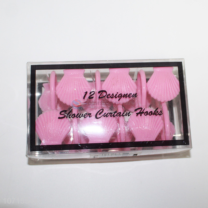 New products 12 pieces shell design plastic shower curtain hooks shower curtain rings