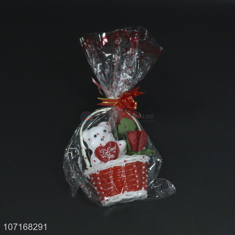 Creative design rose flower cute bear with basket set for valentine gift